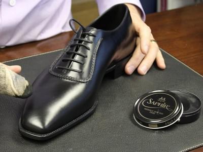 Làm sạch giày trước khi đánh xi Saphir Pháp.
